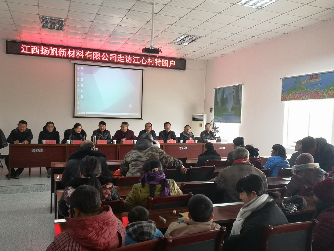 2019年1月20日,正值春節(jié)來(lái)臨之際,浙江揚(yáng)帆新材料股份有限公司副總裁陶明,江西揚(yáng)帆新材料有限公司總經(jīng)理陳育亮在彭澤縣政府扶貧辦副主任許金花,縣工商聯(lián)主任吳義群,縣質(zhì)監(jiān)局局長(zhǎng)慈金兵,縣就業(yè)局副局長(zhǎng)汪子正等領(lǐng)導(dǎo)的陪同下來(lái)到棉船鎮(zhèn)江心村,開展“產(chǎn)業(yè)幫扶及走訪、慰問(wèn)特困黨員、貧困戶”活動(dòng)。