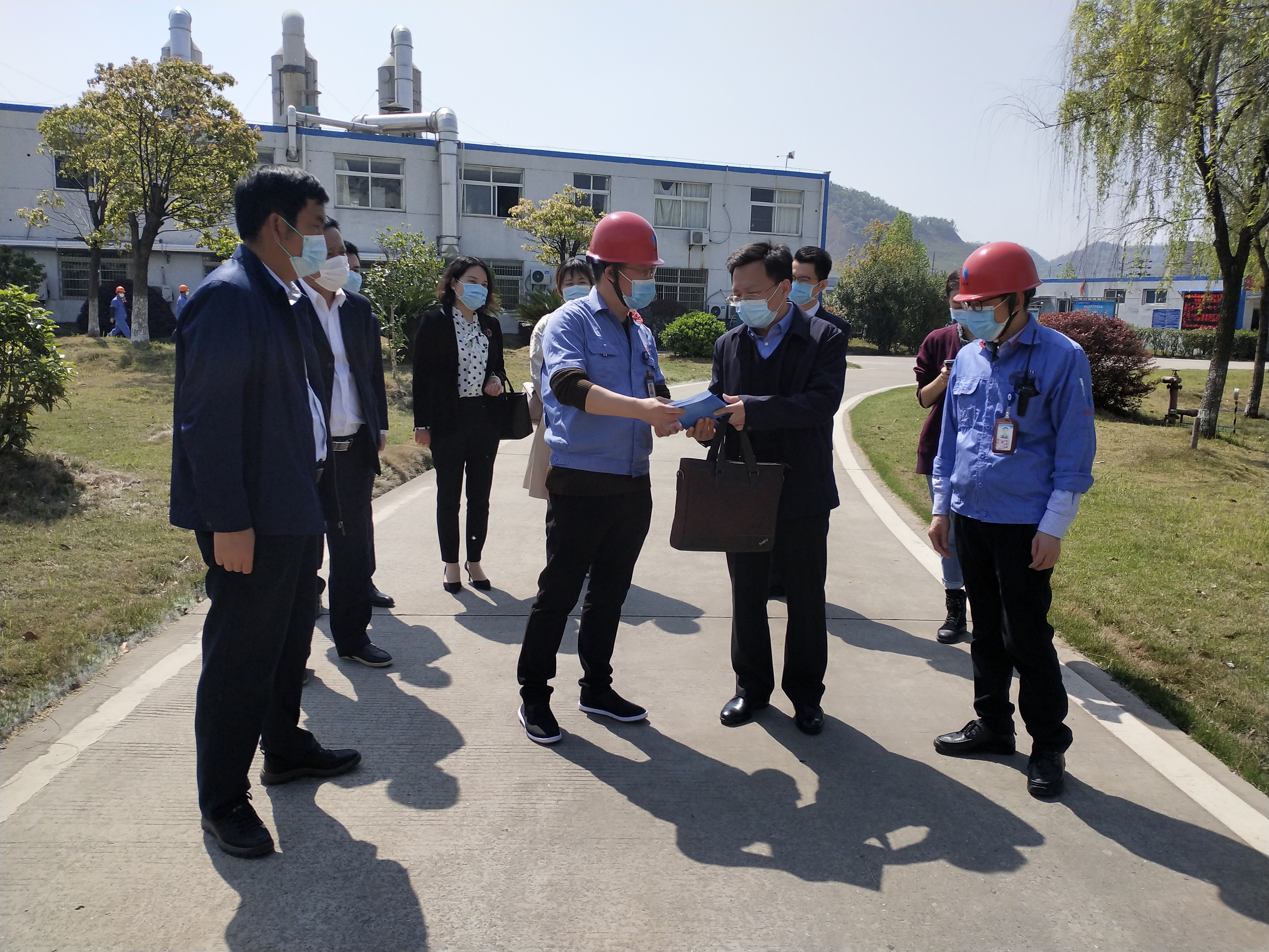 在走訪中,王院長與公司領導親切交談,詢問了疫情對企業生產、產品訂單、人員復工等各方面的影響,認真查看了企業防疫措施,詳細了解企業復工復產后的整體恢復情況,并結合公司實際解答了相關政策,最后為公司送上《“防疫情、促發展復工復產”政策匯編》等資料,助力企業共渡難關、共克時艱。陶總在陪同中向來訪領導介紹了公司產品用途、生產現狀、安全、環保等相關情況,匯報了疫情期間公司為保證復工復產采取的措施及日常管理手段。走訪組在深入了解企業情況后,對公司的日常管理及防疫期間各項工作安排給予了高度評價,并希望企業在將防疫工作常態化下,用足用活各類惠企政策,實現疫情防控和企業發展兩不誤。